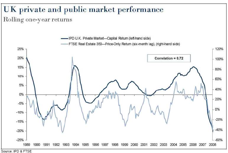 A new chapter has been written today on the discussion as to how the listed real estate sector (property stocks) resembles to or correlates with direct real estate (bricks and mortar investments).